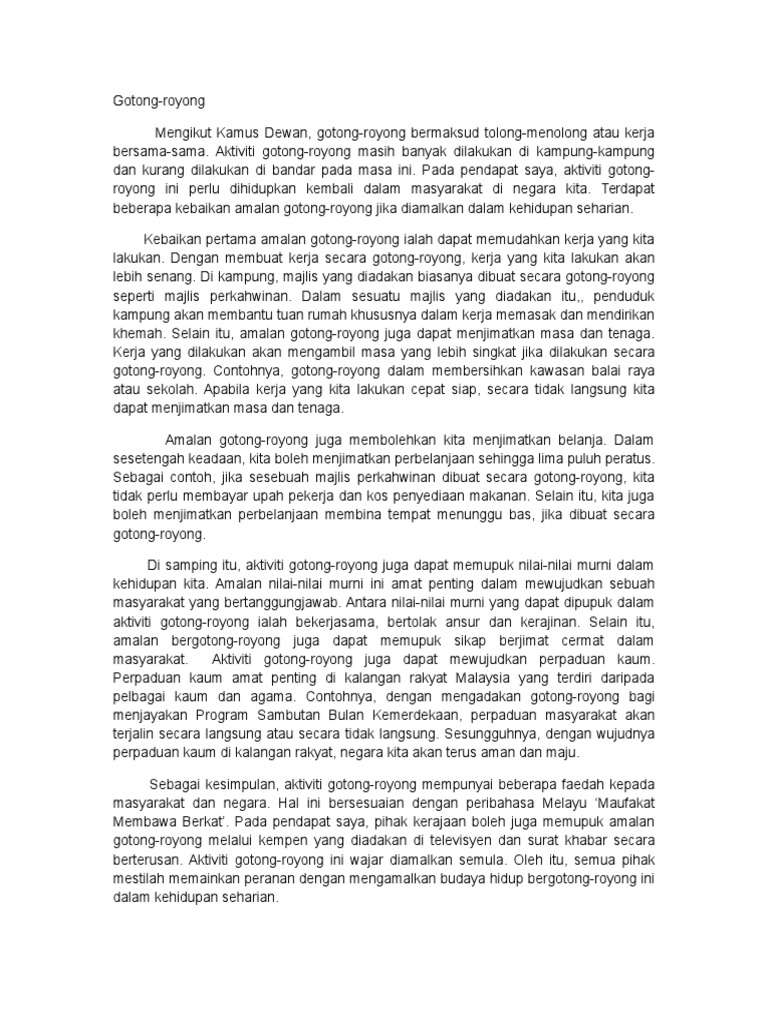 Amalan ini lazimnya dibuat untuk menjalankan majlis seperti kenduri perkahwinan atau majlis keramaian yang melibatkan komuniti setempat. Jika ini kurang cocok silahkan pilih. Download lagu amalan gotong royong 5.49mb dan streaming kumpulan lagu amalan gotong royong 5.49mb hasil diatas adalah hasil pencarian dari anda amalan gotong royong mp3 dan menurut kami yang paling cocok adalah amalan gotong royong. Kesedaran sivik boleh ditakrifkan sebagai rasa sedar yang mendalam dan berterusan serta muncul dari hati seseorang atas dasar. Contoh kegiatan yang dapat dilakukan secara bergotong royong antara penduduk taman dan membersihkan linkungan sekitar.